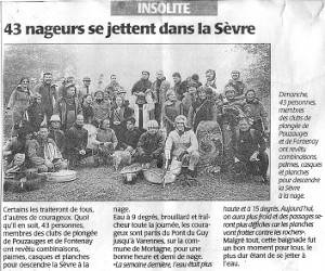 Nouvelle activité, la descente de rivière hivernale, premier épisode dans la Smagne…… et ses hauts fonds. Le club dispose désormais d’un encadrement composé de 8 niveaux V (directeur de plongée exploration). Sorties à Giens et 18 sorties en carrière. Participation à la sécurité de diverses manifestations comme la fête du Lac, le triathlon de Chantonnay et les foulées Pouzaugeaises.